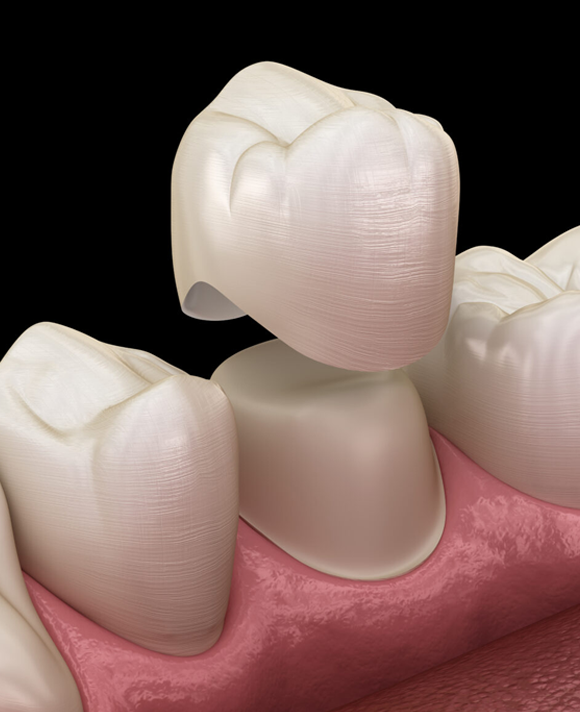 Dental crowns are custom-made caps placed over damaged or treated teeth to restore shape, size, strength, and appearance. They protect weakened teeth, improve functionality, and enhance overall aesthetics.
